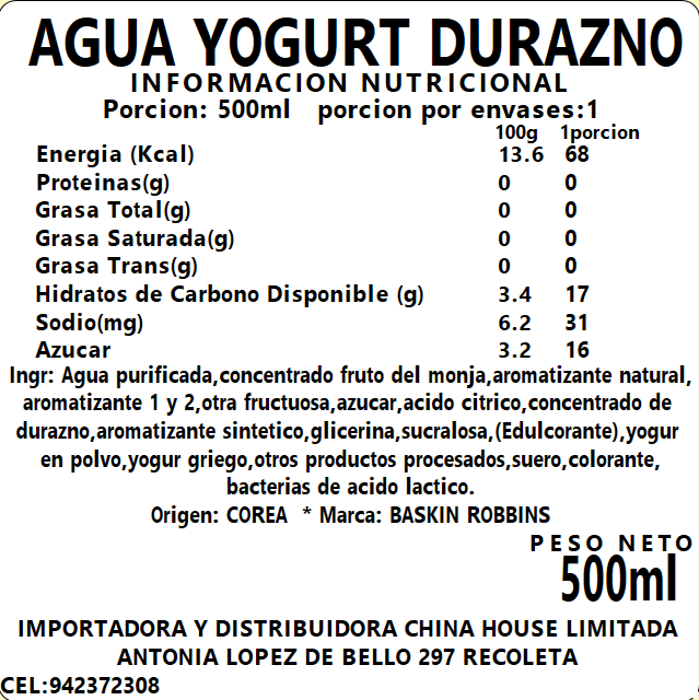 Agua Yogurt Durazno 500ml