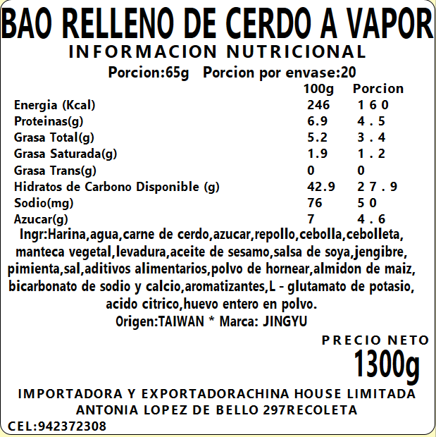 Bao a Vapor Cerdo Congelado 1300g (20pcs)