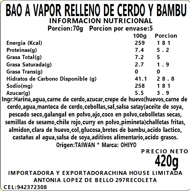 Bao a Vapor Cerdo y Bambu (congelado) 420g (6pcs)