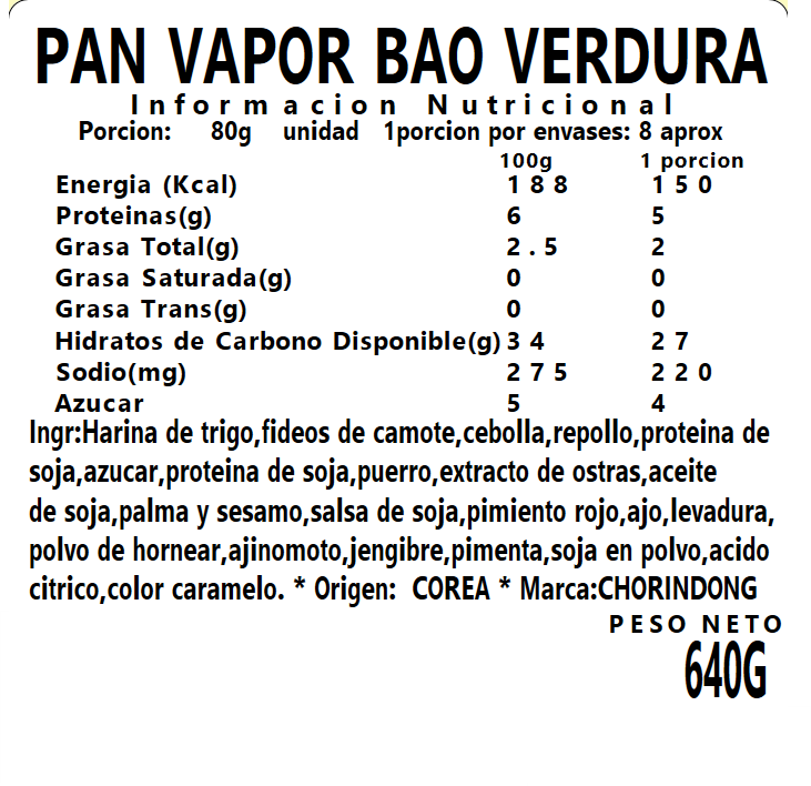 Bao a Vapor Verdura 640g (Congelado)