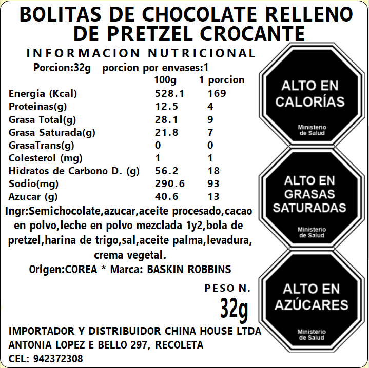 Bolitas de chocolate Relleno de Pretzel Crocante 32g