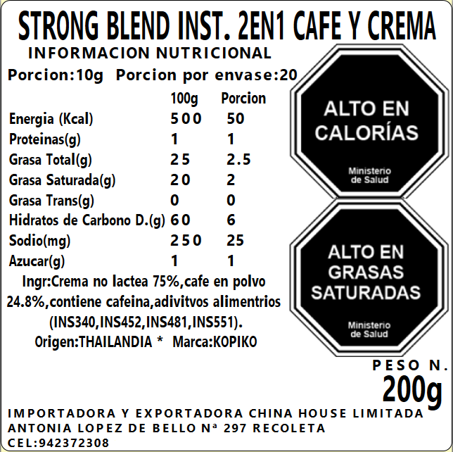 Cafe Inst. en Polvo con Crema Strong Blend 2 en 1 200g