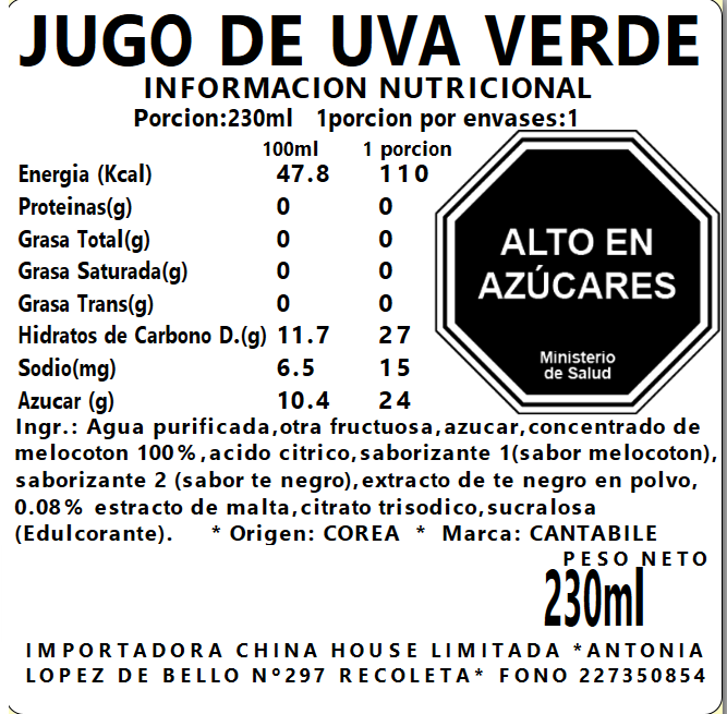 Caja Sachet Jugo Uva Verde (P) 230ml