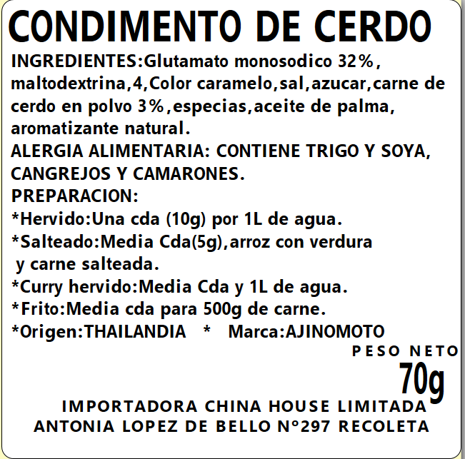 Condimento de Cerdo 70g