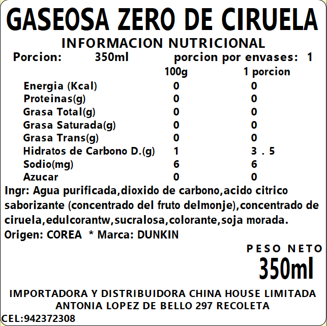 Dunkin Zero Gaseosa Ciruela 350ml