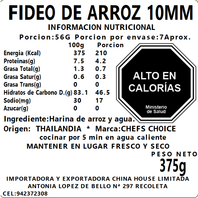 Fideo de Arroz Gluten Free (10MM) 375g