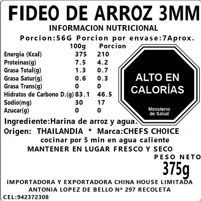 Fideo de Arroz Gluten Free (3MM) 375g