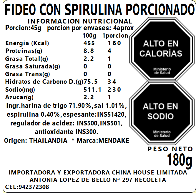 Harina de trigo, sal, espirulina en polvo, almidón de tapioca, regulador de acidez.