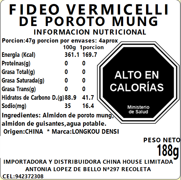 Fideo Vermicelli Poroto Mung 188g