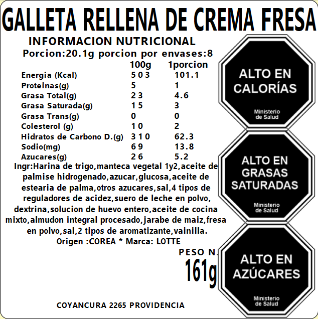Galleta Rellena de Crema Frutilla 161g