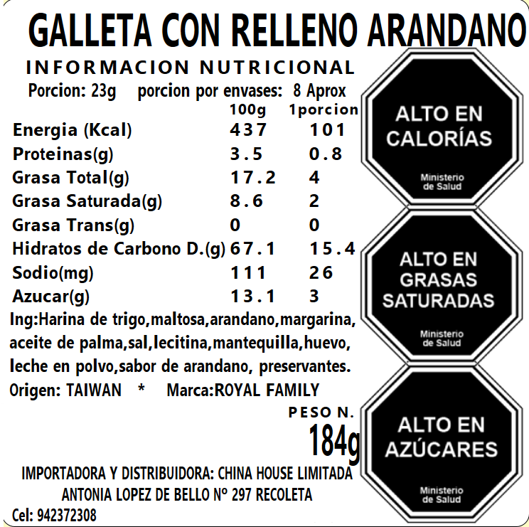 Galleta Relleno de Arandano 184g