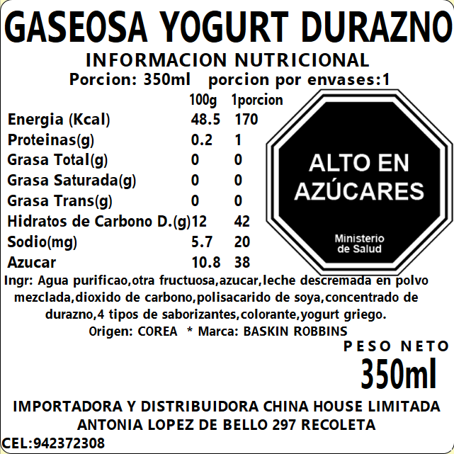 Gaseosa Yogurt Durazno 350ml