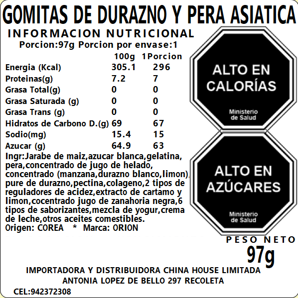 Gomita Forma de Durazno y Pera Asiatica 97g