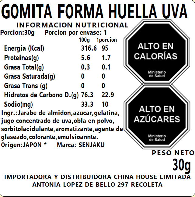 Gomita Forma Huella de Uva 30g