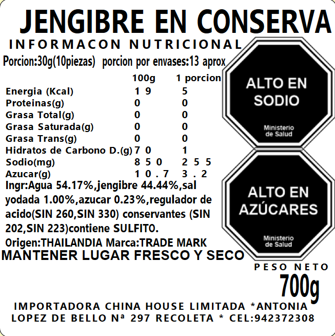 Jengibre para Sushi 700g