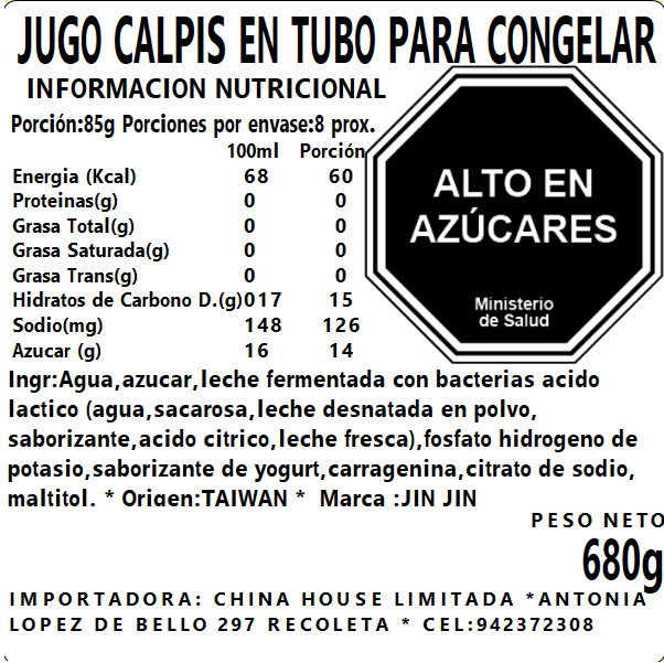 Jugo Calpis en Tubo para Congelar 680g