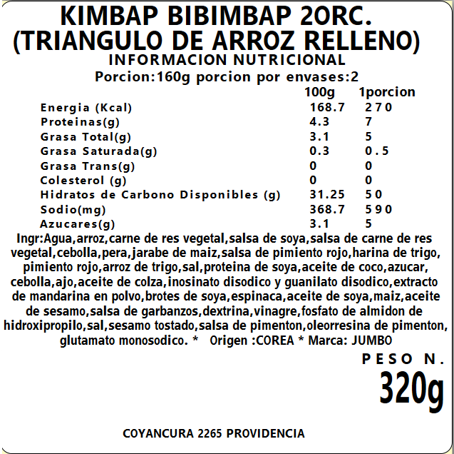Kimbap Bibimbap 2porc. 160g (Congelado)