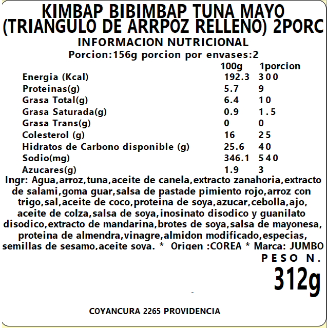 Kimbap Bibimbap Tuna Mayo 2porc. 156g (Congelado)