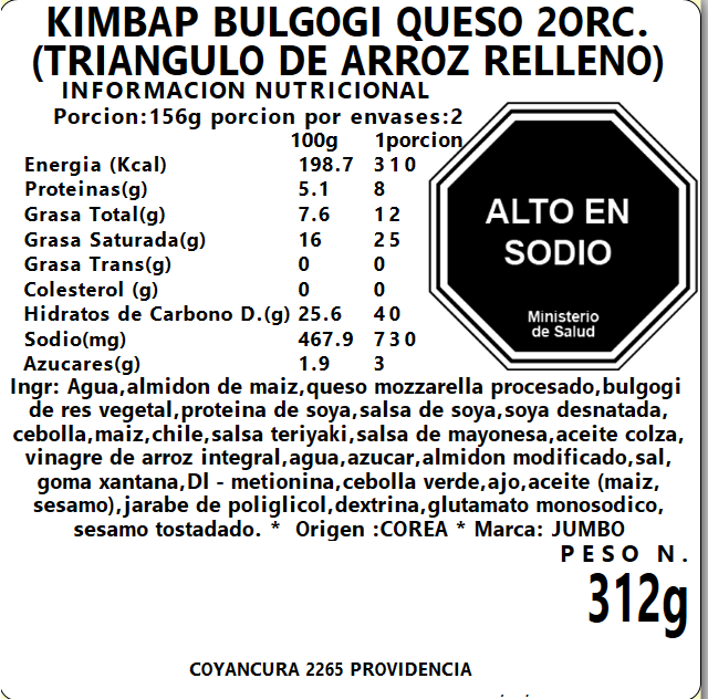 Kimbap Bulgogi Queso 2porc. 156g (congelado)