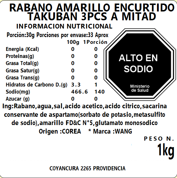 Rabano Amarillo Takuban 3pcs a mitad 1kg