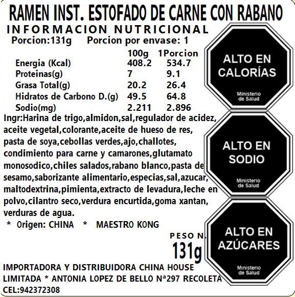 Ramen inst. Estofado de Carne con Rabano Pote 131g