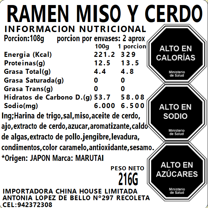 Ramen Inst. Hokkaido Miso y Cerdo 216g (2por.)