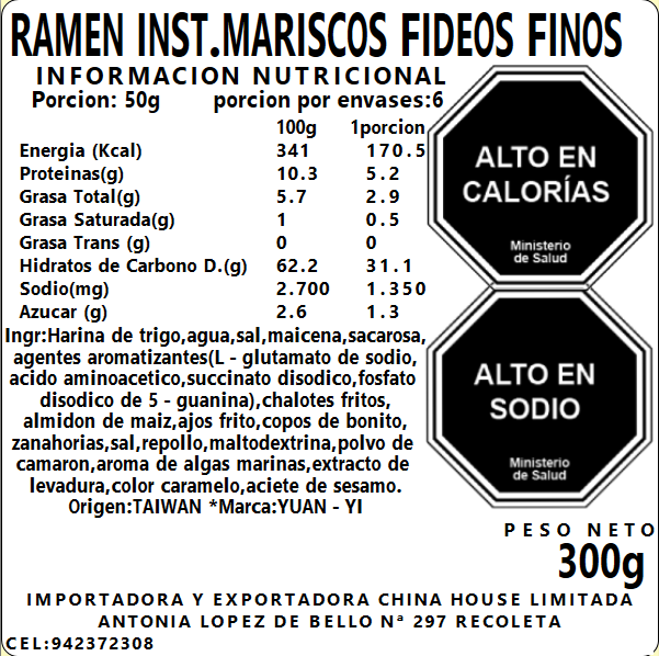 Ramen Inst. Mariscos fideos finos 300g 6 porc
