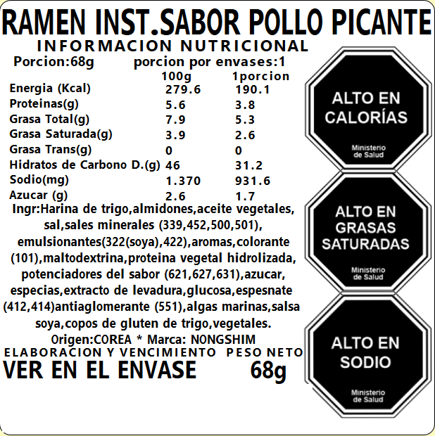 Ramen Inst. Pollo Picante Shin Cup 68g