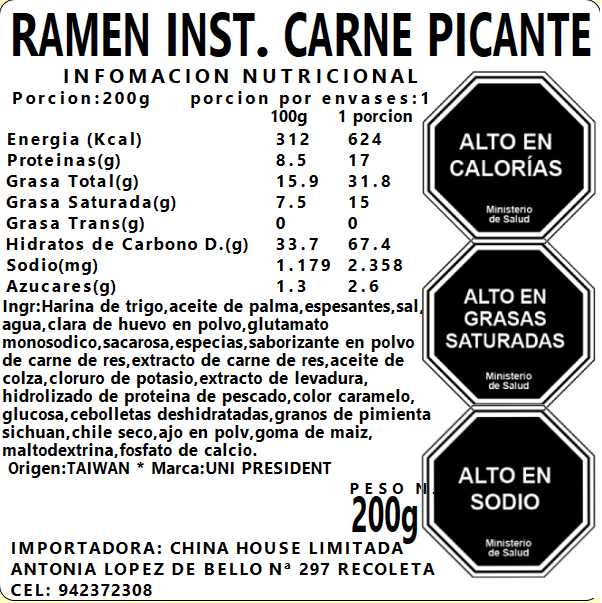 Ramen Inst. Sabor Carne Picante 200g