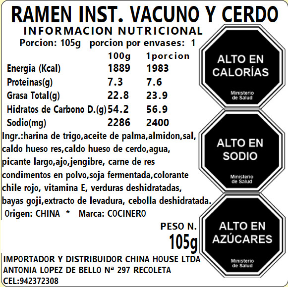 Ramen Inst. Vacuno y Cerdo Picante suave 108g
