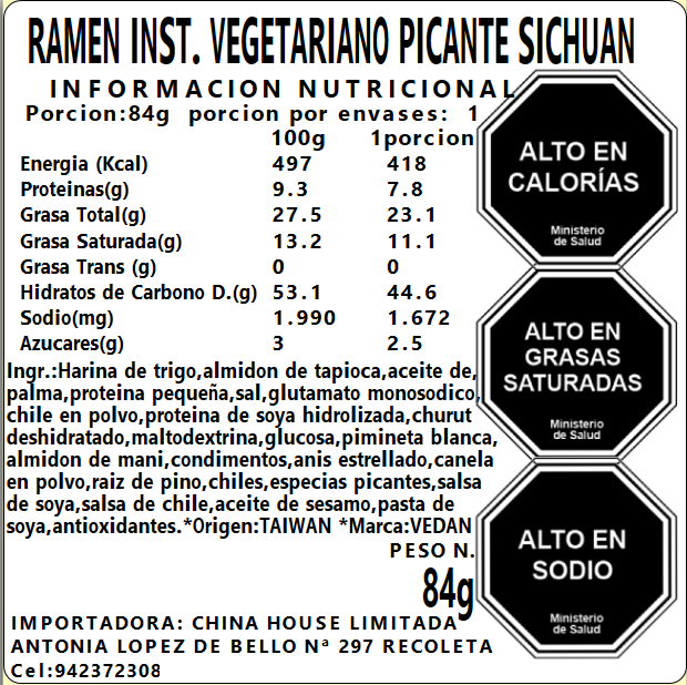 Ramen Inst. Verduras Picante sichuan 84g
