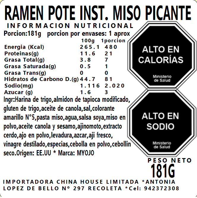 Ramen Pote Inst. Miso Picante 181g