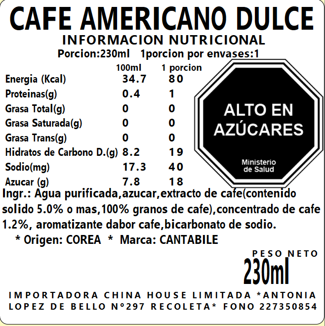 Sachet Cafe Americano Dulce (P) 230ml