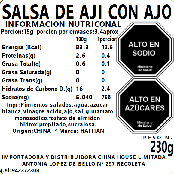 Salsa de chile Con Ajo 230g