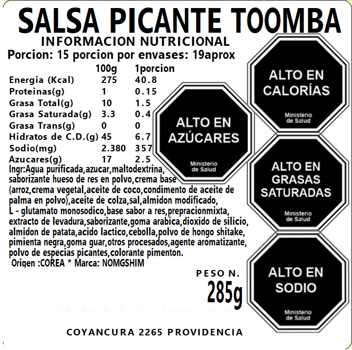 Salsa Toomba Queso Picante 285g