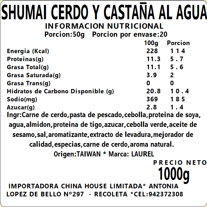 Shumai Cerdo con Castaña de Agua (Congelado) 1kg