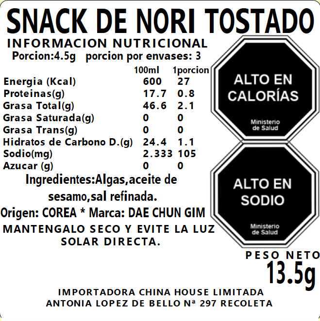 Snack Nori Verde Asada 4.5g x 3