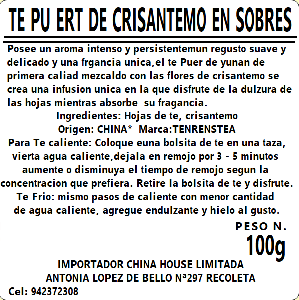 Te Pu Erth con Crisantemo 50sobres 100g