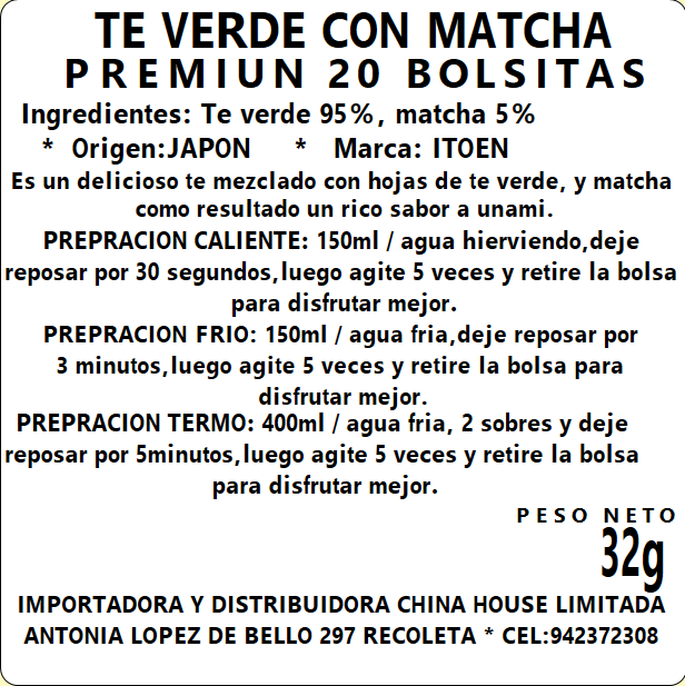Te Verde Matcha Premiun 20 sobres 32g