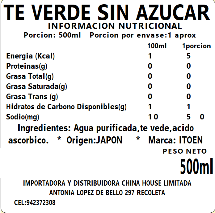 Te Verde sin Azucar 500ml