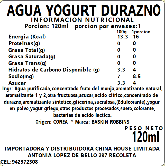 Tetrapack Agua Yogurt Durazno 120ml