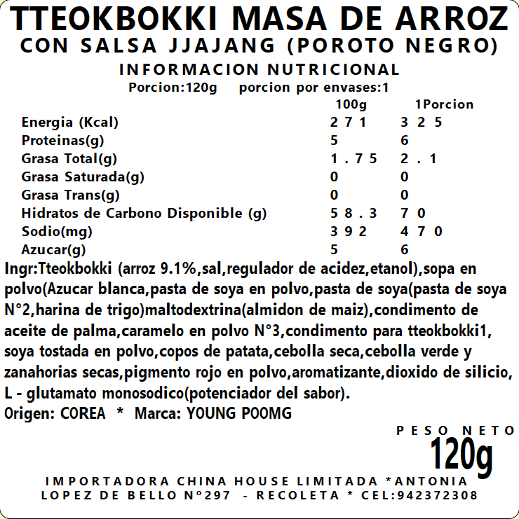 Tteokbokki Jjajang Poroto Negro 120g