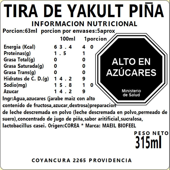 Yakult Piña Tira 315ml (Congelado)